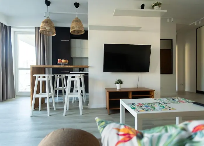 Staying at Warsaw Apartment, guests have access to a balcony and a dressing room equipped with air conditioning. Enhancing your comfort, a separate toilet and a shower can be found at this accommodation. Furthermore, the bathroom boasts hair dryers and towels.